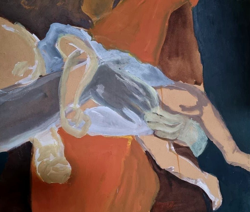 Artista visual y Licenciada en Artes Plásticas por la UNT, vive en Tucumán, su territorio de origen y punto de partida para pensar la pintura como herramienta crítica. Aprendió a caminar para ser flâneur y desde entonces recorre lo urbano como espacio de observación y reflexión. Trabaja con la pintura por su carga histórica, ligada a lo hegemónico y dominante, pero desde una mirada que busca tensar esa tradición para dar visibilidad a lo marginal. Sus obras no buscan ser amables: son escenas figurativas que interpelan, que denuncian la invisibilidad de los cuerpos y relatos excluidos.